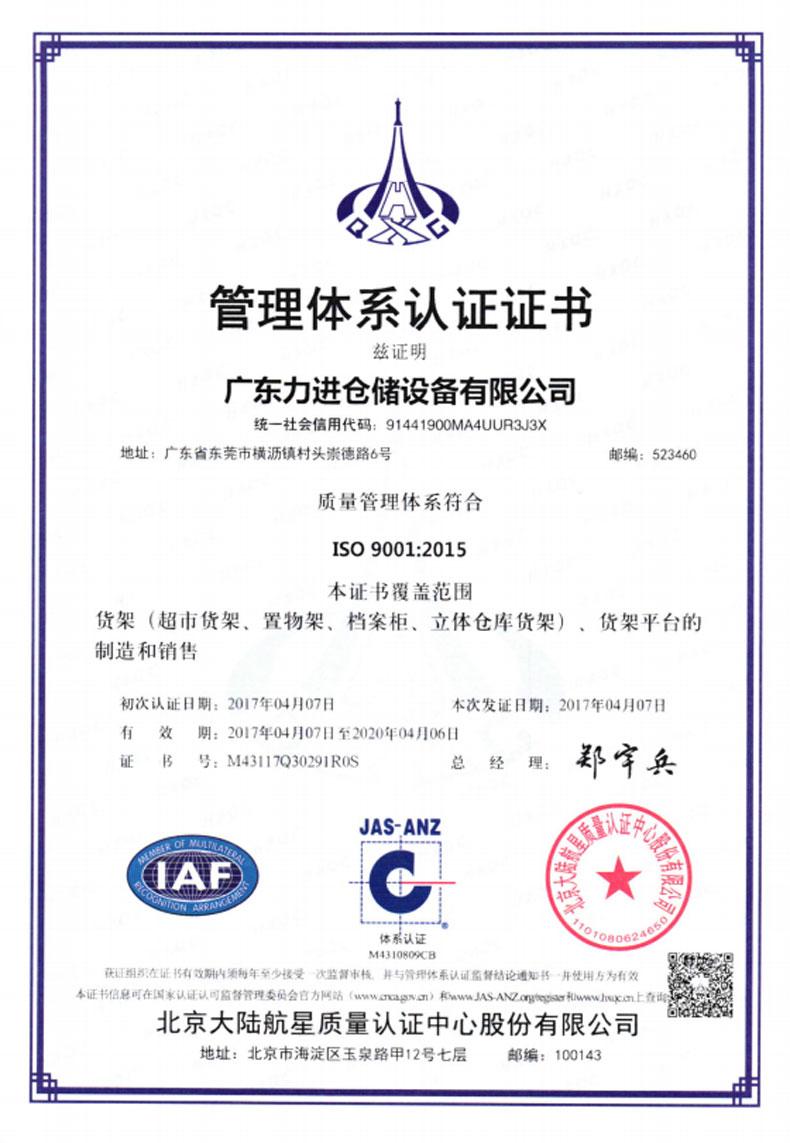 ?2016年5月    更名為廣東力進(jìn)倉儲設(shè)備有限規(guī)公司,搬遷至東莞市橫瀝鎮(zhèn)村頭工業(yè)區(qū),占地面積12800平方米。
